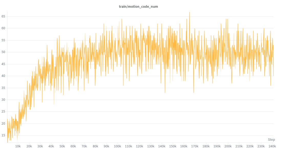The vision codes stabilize at approximately 30, while the motion codes reach a healthy plateau of approximately 50.